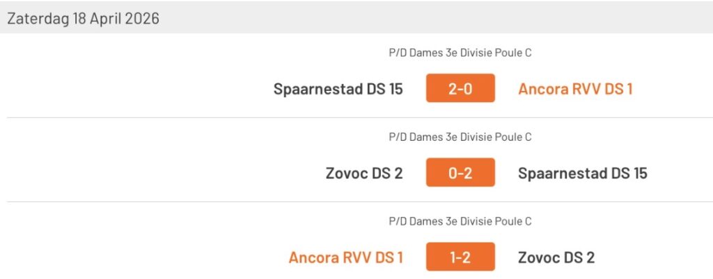Helaas hebben onze dames van Ancora RVV Dames 1 gisteren in de driekamp om promotie/degradatie hun deelname aan de derde divisie voor volgend seizoen verloren.