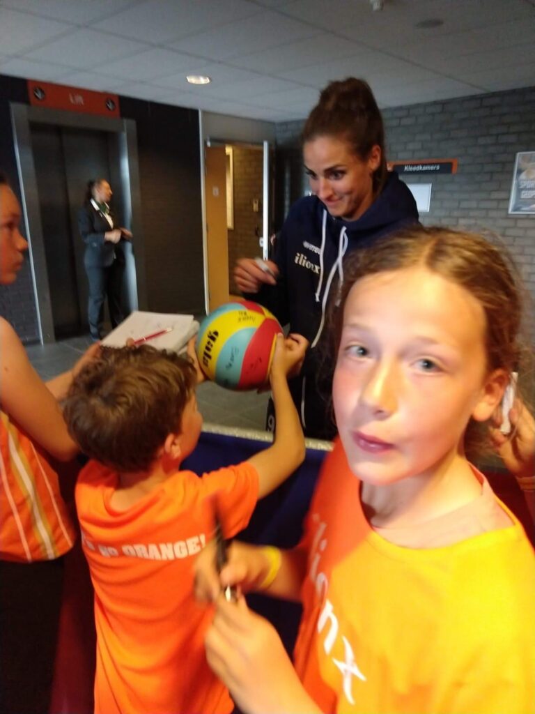 Gekscherend werd de meiden gevraagd of ze de foto met Myrthe niet over wilden doen. Nee natuurlijk niet, dat is gênant, zijn jullie gek? Maar voordat iedereen het goed en wel doorhad stond Paola al aan tafel bij de meiden uit Haarlem en nam ze Myrthe mee voor de foto… Deze werd onder verontschuldigingen van de meiden gemaakt, toch nog een missie geslaagd vandaag😂.